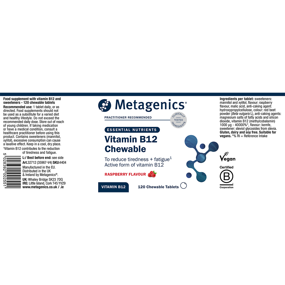 Vitamin B12 Tablets are back with brand-new packaging under Metagenics, delivering the same expert formula you trust.
